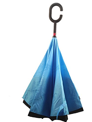 Unique Design Double Layer Inverted Umbrella outside in umbrella, Upside Down Umbrella (Blue)