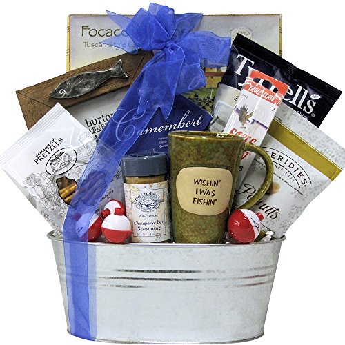 -. Feature : If he loves to fish, this is the perfect Father's Day gift for him! / Includes a great assortment of gourmet items and practical fishing gifts like Bobbers, Snelled Fish Hooks, and features a Fishing Themed Photo Frame and Ceramic Fishing Mug. / In addition to enjoying these wonderful fishing gifts, he'll love the great gourmet gifts too - seafood seasoning, sea salted chip, nuts, pretzels and more! / Fast Shipping & Superior Customer Service / Dim: 10"D x 12"H