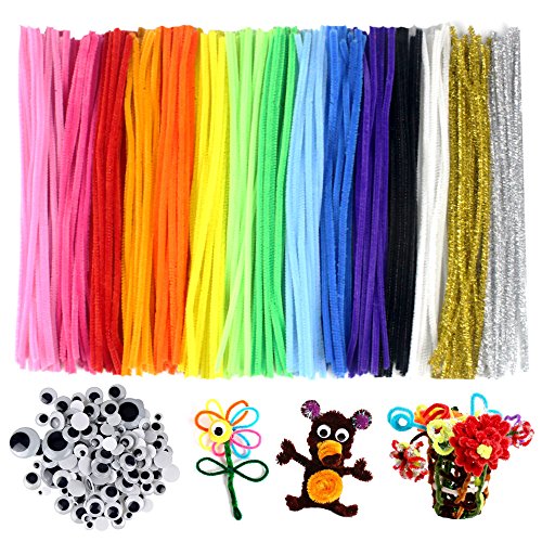 - Package includes 300 pcs pipe cleaners in 15 colors (13 rainbow colors, gold & silver), plus 100 Wiggle Googly Eyes to meet all of your needs.