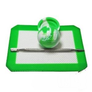 Product Description Featuring a 5x4" non-stick silicone mat for all your concentrate needs. Comes with a non-stick silicone jar and a 4 shovel tip extract tool for your convenience. 0