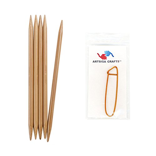 - Bundle includes 1 ChiaoGoo Double Point 6-inch (13cm) Bamboo Dark Patina Knitting Needle; Size US 8 (5mm) with 1 Artsiga Crafts Stitch Holder 1036-8