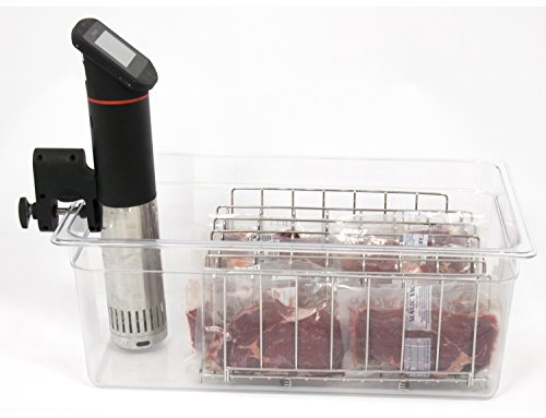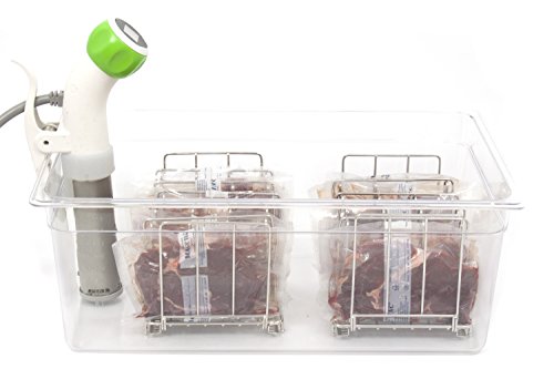 The Party Container! High Capacity. Sous Vide Water Bath for use with Immersion Circulators like Anova, Nomiku, Sansaire, PolyScience etc. Perfect Match With Lipavi L20 Sous Vide Rack. The height 8 Inch of the container is exactly right for usage with Immersion Circulators. Strong and Clear Polycarbonate with high temperature tolerance - from -40 to 210F Our Sous Vide Racks Increase the Useful Capacity of the Container Considerably, and Ensure Quicker and More Even Warming, as well as Easy and Safe handling. Examples of good Sous Vide Combinations: Cambro 4.75 Gallon Combined With LIPAVI L15 (26SD) Sous Vide Rack.... For Sous Vide Supreme : LIPAVI L18 Sous Vide Rack.... For Sous Vide Demi : LIPAVI L15 (26SD) Sous Vide Rack... TAILORED LIDS: LIPAVI has the following matching products: L5 rack - C5 container (7 quarts / 1.75 gallon) - C5L lids with tailored notches for the common circulators* (for the small household)......... L10 rack - C10 container (12 quarts / 3.0 gallon) - C10L lids with tailored notches for the common circulators*............. L20 rack - C20 container (26 quarts / 6.5 gallon) - C20L lids with tailored notches for the common circulators*........... * The circulators are presently: AP - Anova Precision ... AO - Anova One .... SA - Sansaire ....NO - Nomiku .... PCR - PolyScience Creative .... PCH - PolyScience Professional Chef.... Saech for LIPAVI on Amazon for all matching productsFeature