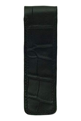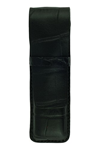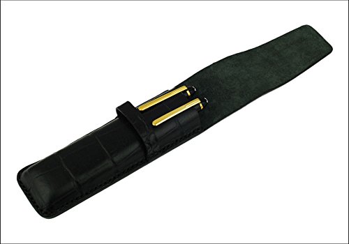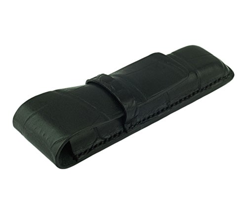 Leather Double Pen Case, Crocodile Grain Leather, Black, Handmade