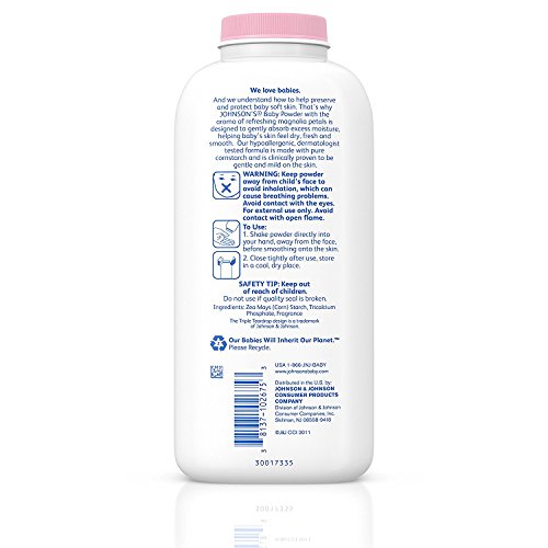 -. Binding : Misc. -. Brand : Johnson & Johnson -. EAN : 0602464641500 -. Feature : Includes Johnsons Lavendar Baby Powder 15 oz & Magnolia Petals Baby Powder / Made with pure cornstarch to absorb moisture and keep your babies skin soft / Gently absorb excess moisture helping baby's skin feel dry / Helps reduce friction and irritation / Clinically proven to be gentle and mild for your baby's skin -. IsAdultProduct : 0 -. Label : Johnson & Johnson -. Manufacturer : Johnson & Johnson -. MPN : 30017333 -. PartNumber : 30017333 -. ProductGroup : Beauty -. ProductTypeName : BEAUTY -. Publisher : Johnson & Johnson -. Studio : Johnson & Johnson -. Title : Johnsons Baby Powder Lavender, 15 oz & Johnsons Baby Powder Magnolia Petals, 15 oz - Keep Your Baby Soft And Smelling Fresh -. UPC : 602464641500