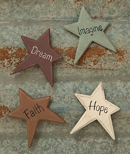Set of 4 Star Magnets - Wood - Hearthside - Hope, Dream, Faith, Imagine - Primitive Design - Cute Gift Idea