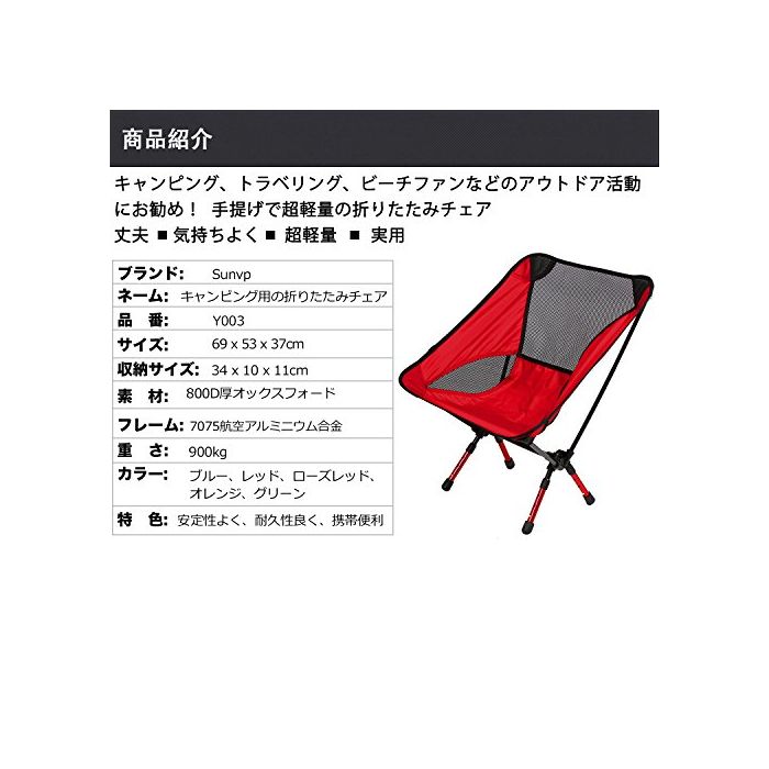 원본상품명:Sunvp 折りたたみチェア 手提げ 超?量 ピクニック フィッシング キャンピング ハイキング BBQ 旅行 スポ?ツ チェア 椅子 グランドチェア リクライニング キャンプ チェア (レッドB)