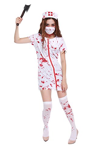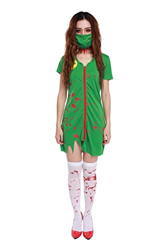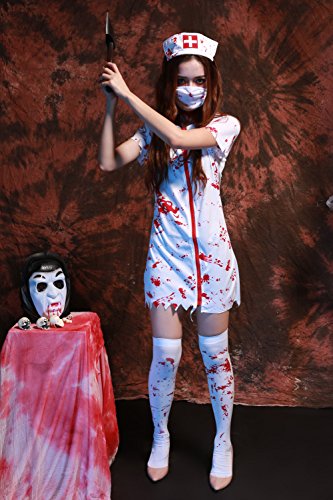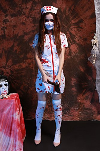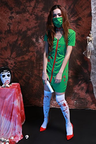 -. Brand : GoLoveY -. Department : womens -. Feature : >> Material: Polyester & Spandex. / >> Imported. Factory outlet Halloween costume online store. / >> Want to be a vampire, scary ghost or zombie? This dress costume can form the base for almost any kind of costume you can imagine. Front zipper closure. / >> One size fits all. Free size: Chest: 31.5'', Waist: 25.2'', Length: 33'', Fit for the height: 5'3''-5'7''. / >> Item included: Dress & Mask & Headpiece. (Other accessories not included) -. ProductGroup : Apparel -. ProductTypeName : ADULT_COSTUME -. Title : GoLoveY Women's Scary Vampire Zombie Nurse Blooded Halloween Costume