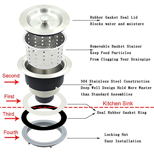 KONE 3-1/2-inch Kitchen Sink Strainer with Removable Deep Waste Basket / Strainer Assembly / Sealing Lid, Stainless Steel