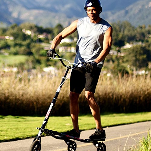 - Feature : Steel frame / Molded foot platforms / Buck-knife folding mechanism / Poly rear wheels provide a stickier contact to the pavement / Heel kicker