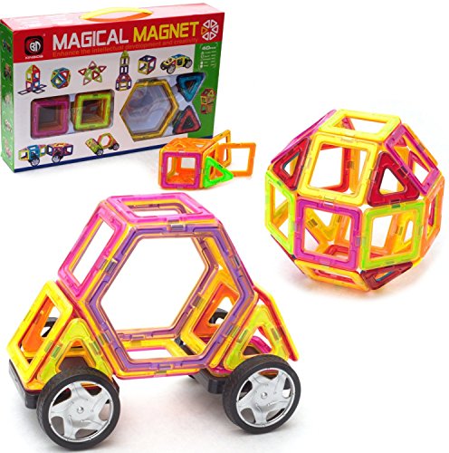 -. Title : Magical Magnet 40PC Set with Wheels! Super Power Magnet Building Blocks - Great for Car Building Fun!!