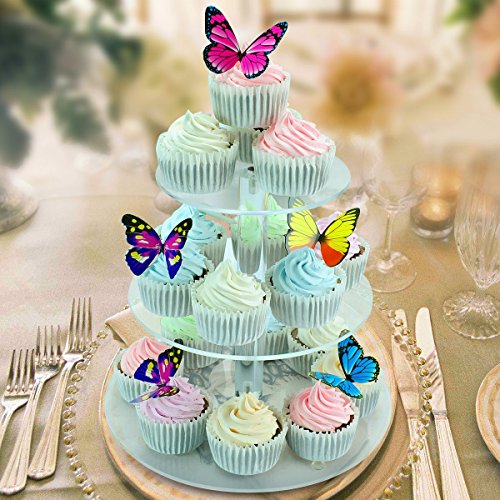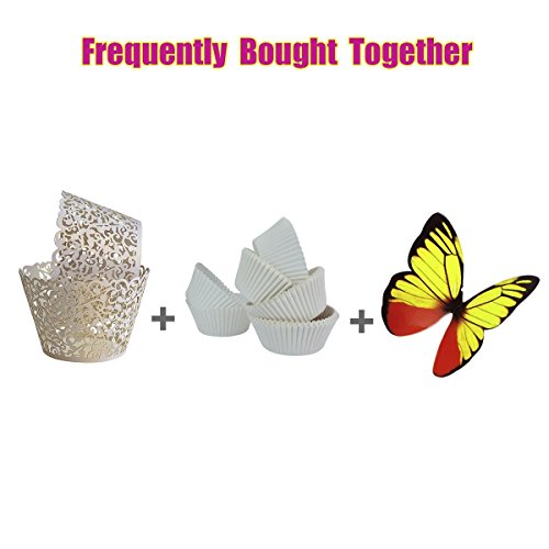 ForPeak Standard Size White Cupcake Paper Baking Cup Pack Cup Liners Cupcake Wrappers 100 Pcs and Butterfly Cupcake Toppers 50 Pcs for Decoration