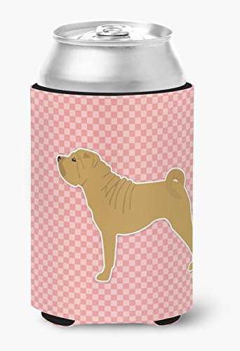 Caroline's Treasures Shar Pei Merry Checkerboard Pink Can or Bottle Hugger BB3652CC, Can Hugger, Multicolor