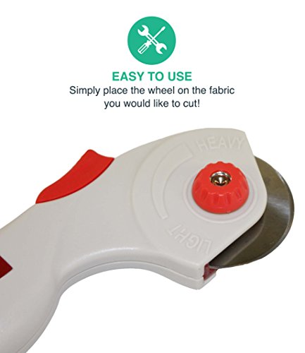 EASY TO USE! Simply place the wheel end of the tool on the fabric you would like to cut, apply pressure, and run the wheel in the direction you would like the cut. and there you have, some professionally cut fabric!