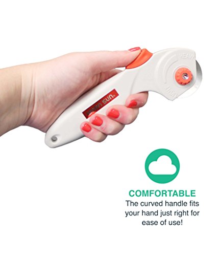 COMFORTABLE! The curved handle fits to your hand so you can be as comfortable as possible as you get your fabric cutting done!