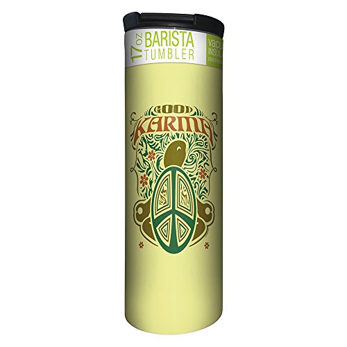 Tree-Free Greetings Good Karma Peace Sign Turtle Vacuum Insulated Travel Coffee Tumbler, 17 Ounce Stainless Steel Mug, Hippie Gift (BT21970)