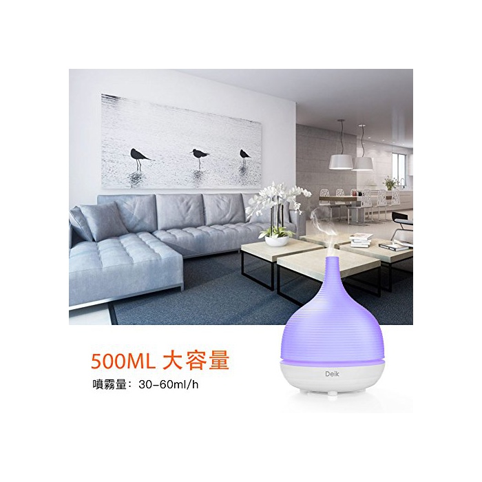 Deik 아로마 diffuser 초음파가 습기공기 청정기 아로마 램프 저 소음공 지펴 방지 자동 정지 기능 7 색변환LED부착 대용량 500Ml AD-P4