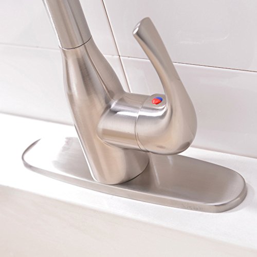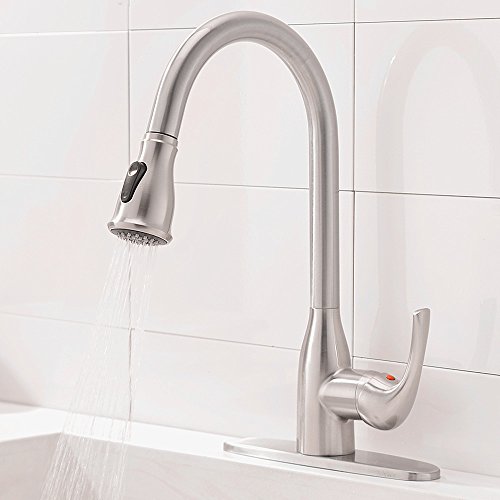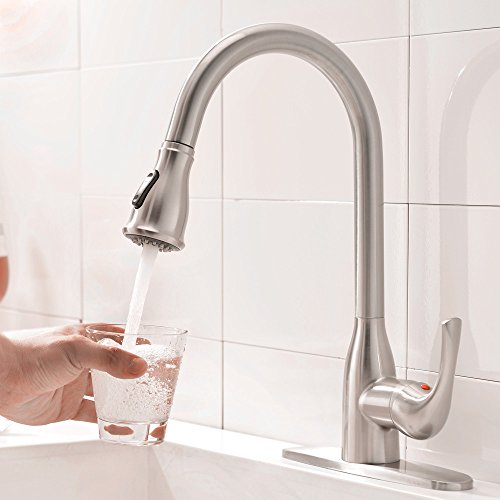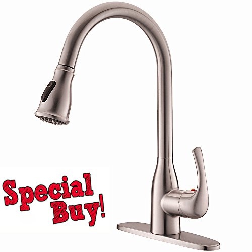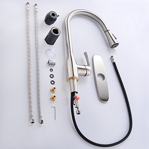 Pull-down spray wand features a long hose providing a long reach ,hot and cold water control kitchen faucet with the best pressured spray.