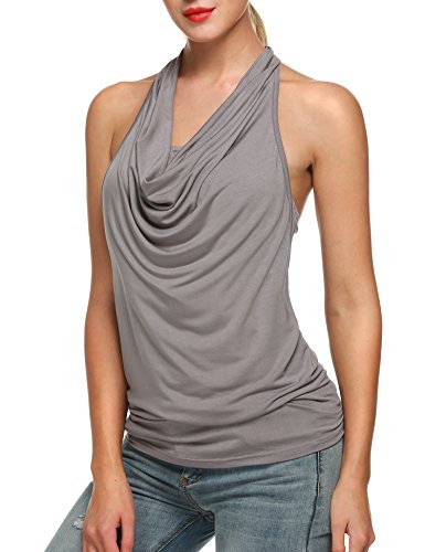 -. Feature : Material: Cotton Blend / 6 Colors for your choice: Wine Red, Purple, Black, Army Green,Lake Blue,Gray / Zeagoo Tank top is made of a very soft,smooth and stretchy fabric,very flattering and comfy. The design of the neck area with a drape neckline, and the open back of this top which can make more attractive and sexy. / This top can be worn casual, sexy and classy. You can dressed it up for a night out, wear it to work or just go out for hiking or walking. Put on a pair of jeans and some boots, toss on some flip flops and shorts, or slide into a sexy skirt and high heels. / This blouse is suitable for Summer, Spring and Fall.It keeps you cool and doesn't encourage sweat. It's very well suited to the Summer heat. In Spring or Fall, or when the temps climb up, you can add a jacket to have a flattering look.