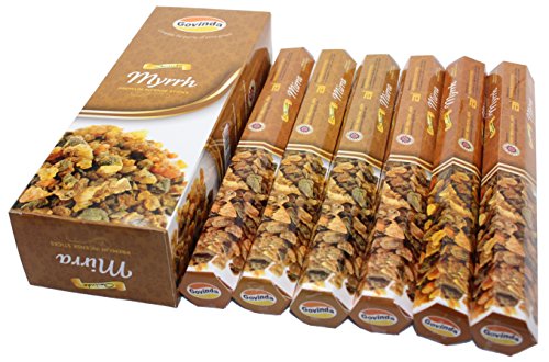 Govinda Incense - Myrrh - 120 Incense Sticks, Premium Incense, Masala Coated