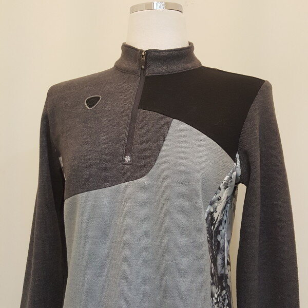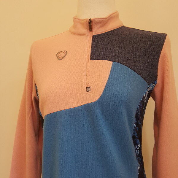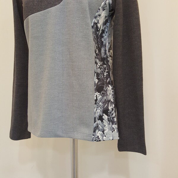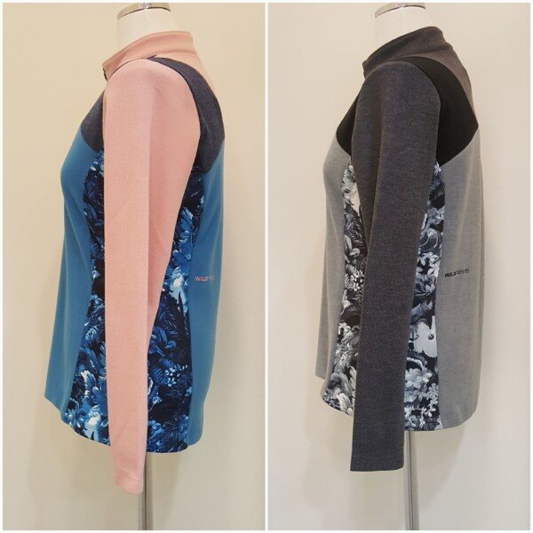 ㅡ써모 파워스트레치 원단의 착용감과 언발란스 절개4도 배색으로 프린세스 라인에 플라워 프린트가 포인트로 여성스러움을 살린 티셔츠 제품.