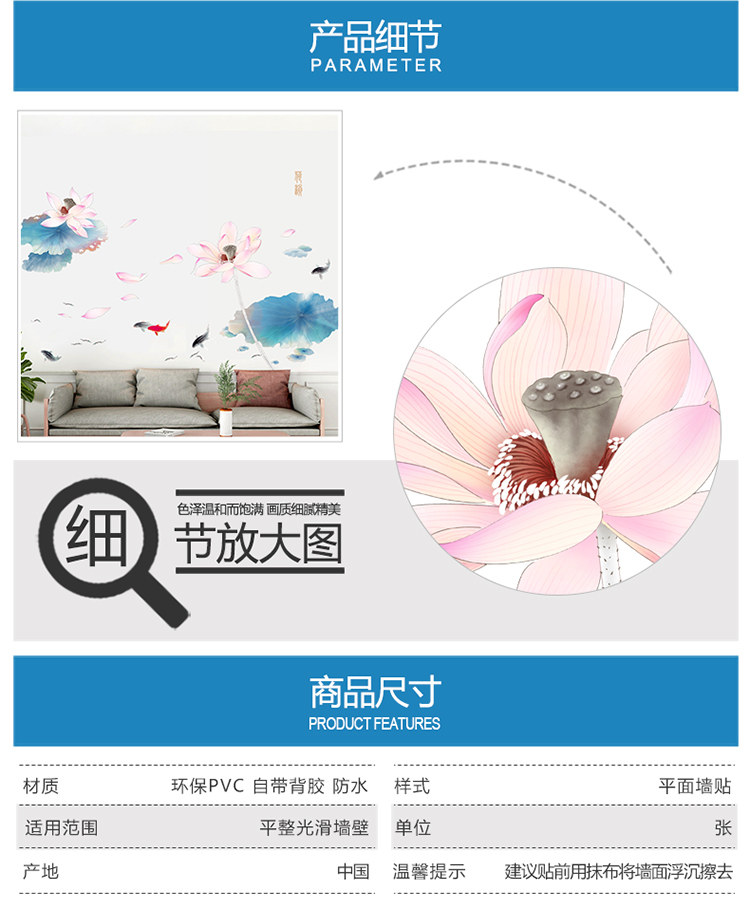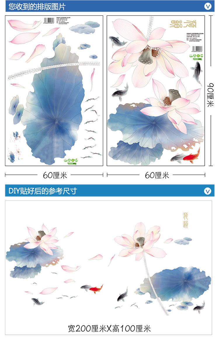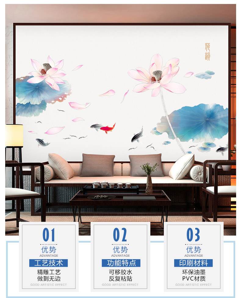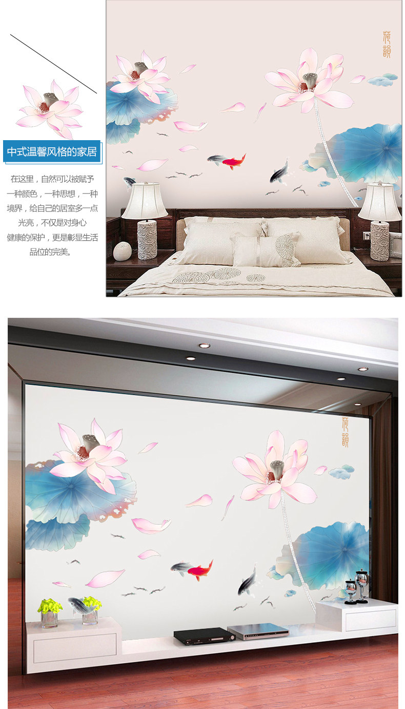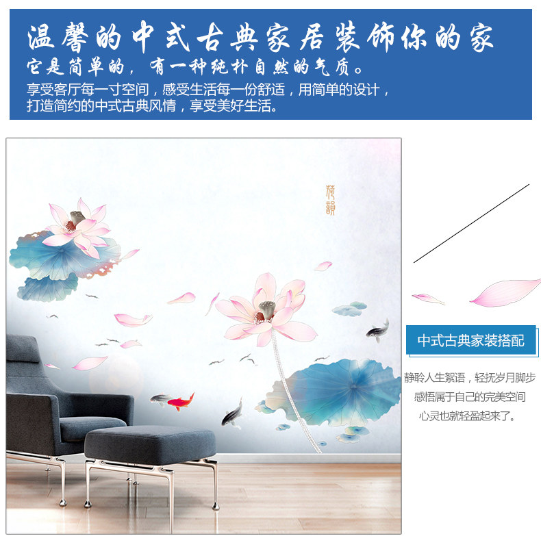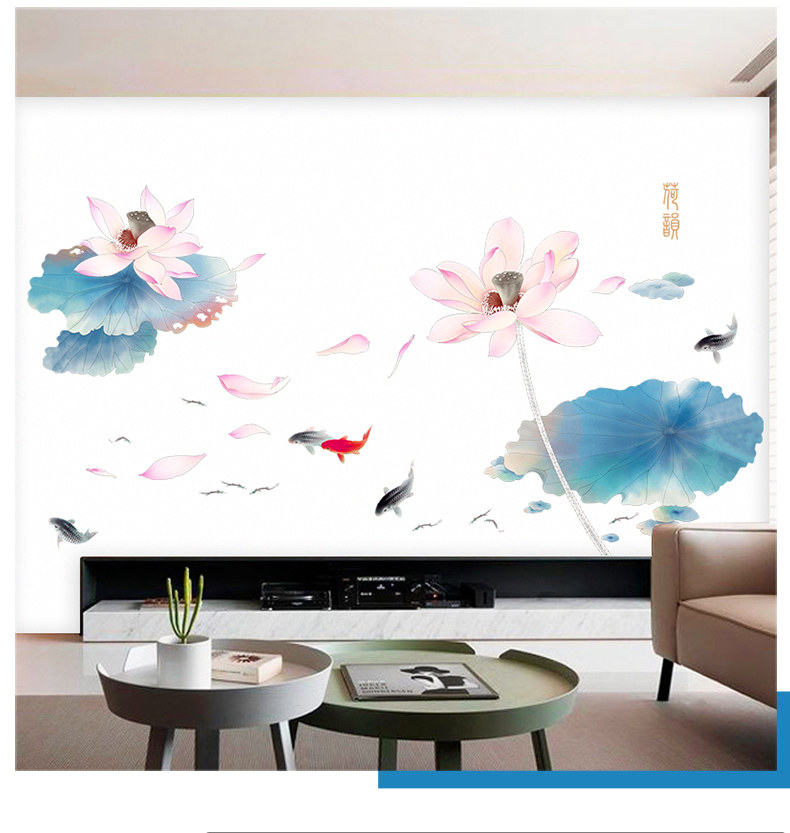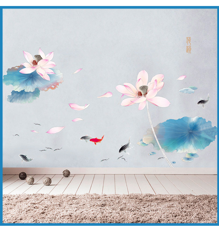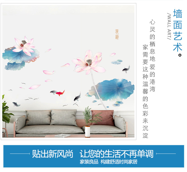 创意荷花墙贴墙面装饰清新贴纸卧室房间床头温馨自粘墙纸贴画