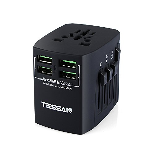 Travel Adapter,TESSAN International Power Adapter Wall Charger with 4 USB Ports 25W /5A- All in one Universal AC Outlet Plugs Covers 150+Countries Europe, UK, Germany, Canada, France,China, Australia