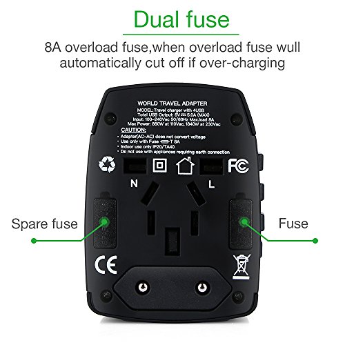 - ✔.All-in-one Adapter with Dual Safety Fuse (8A each),Built-in Safety Shutters,Smart IC for intelligent charging and LED Power Indicator. If Steady LED means it's in normal operation; LED flashing means it's overload