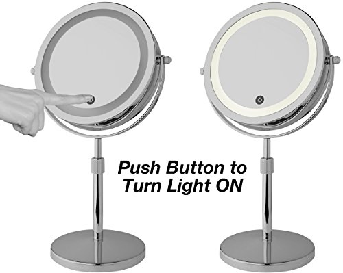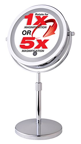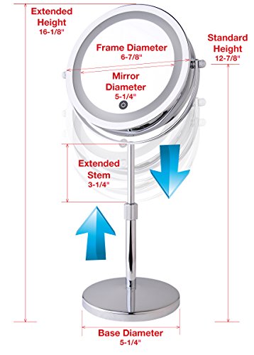 7" Counter Top Telescopic Battery-Powered Lighted Vanity Mirror with 5X Magnification