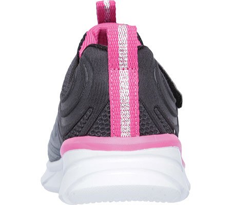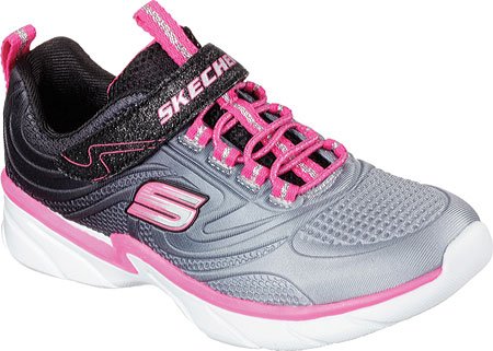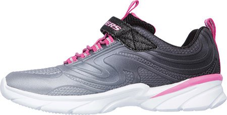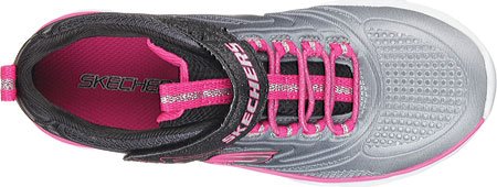 Keep her style light and comfortable with the SKECHERS Swirly Girl - Shine Vibe shoe. Mesh fabric with embossed detail and ombre color effect in a slip on bungee laced sporty sneaker with glitter top strap and lightweight design.Feature