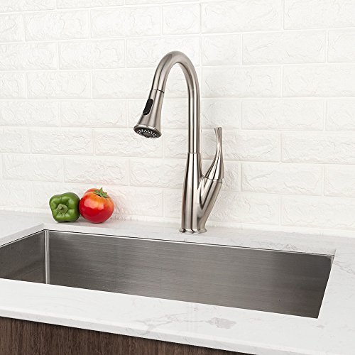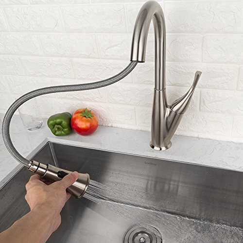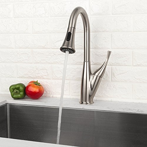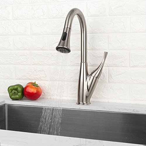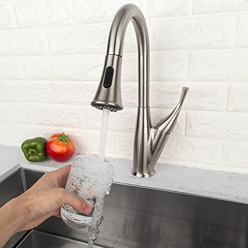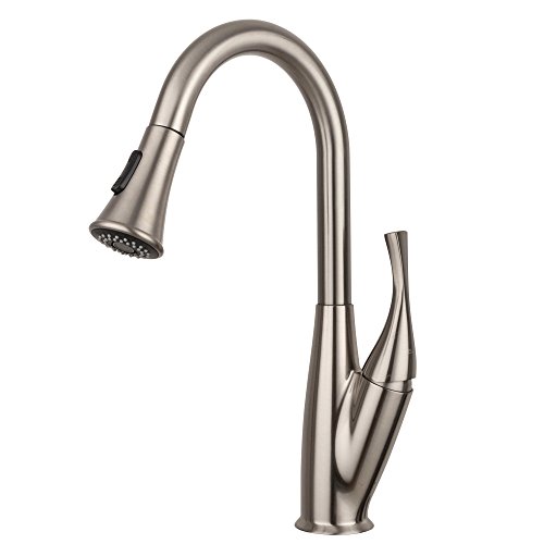 LORDEAR SLC16088 Commercial Flower Vase Shape Single Handle Single Hole Swivel Spout Brushed Nickel Pull Out Sprayer Kitchen Faucet, Deck Mounted Pull Down Kitchen Sink Faucet