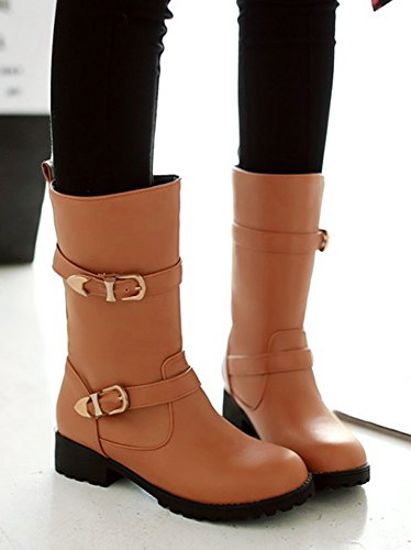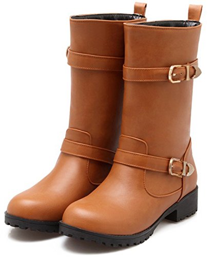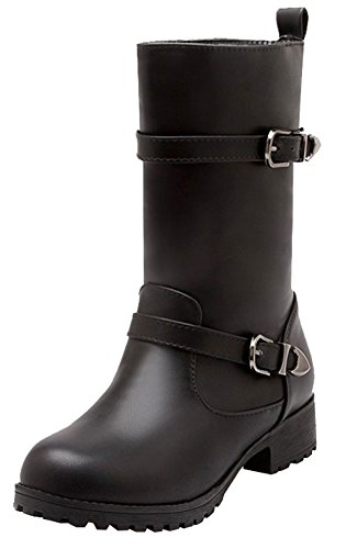 Binding : Apparel Product Description A pair of chic boots can display your nature beauty very well. This pair of shoe could empower you and make you more confident. The heels measure 1.4 inches. You will feel comfy in their low heels. This pair of shoes features solid waterproof upper and ankle high. You will look cute in their round toe. The decoration of buckle will offer you a chic look. The pull on closure is easy for get on and off. The sole is made of good rubber. You will feel comfortable in their soft bottom. You could wear them with jeans, dress and skirts. The sole is made of good rubber. It's really lovely and comfortable. 0