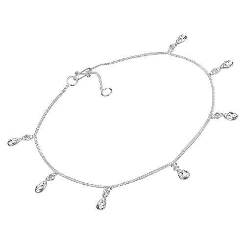Artisan K'Jai from Thailand handcrafted this amazing .925 sterling silver anklet. The design features a single silver chain accented with teardrop shaped cubic zirconia dangles. Your style will look effortlessly elegant with this trendy accessory. PLEASE NOTE: The handcrafted nature of this product will produce minor differences in design, sizing and weight. Variations will occur from piece to piece, measurements may vary slightly.AERAVIDA works directly with gifted and talented Artisans from all over the world. At the core of our philosophy is fair trade and fostering a sustainable future for our Artisans.