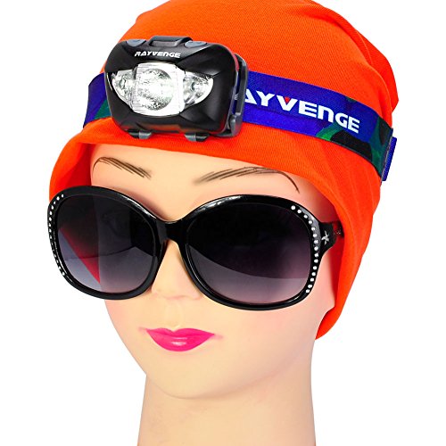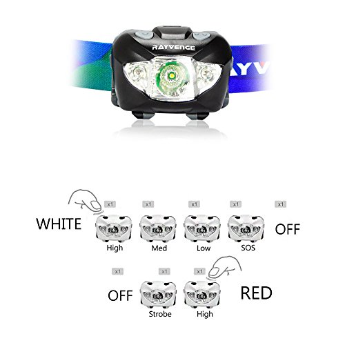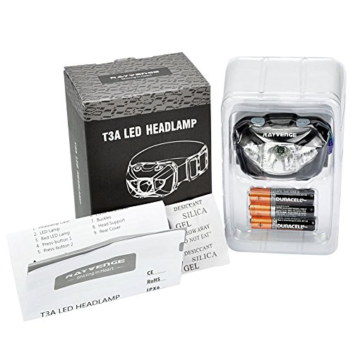 Rayvenge T3A LED Headlamp with Red Light - Lightweight headlamp Flashlight for Running, Hiking, Camping - Best Headlamps with 3 AAA Batteries, 168-Lumen, Waterproof, Long Battery Life