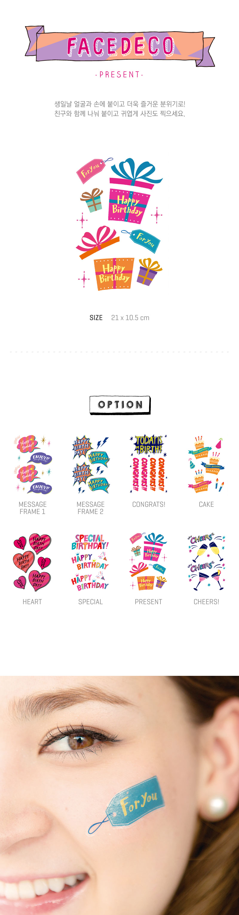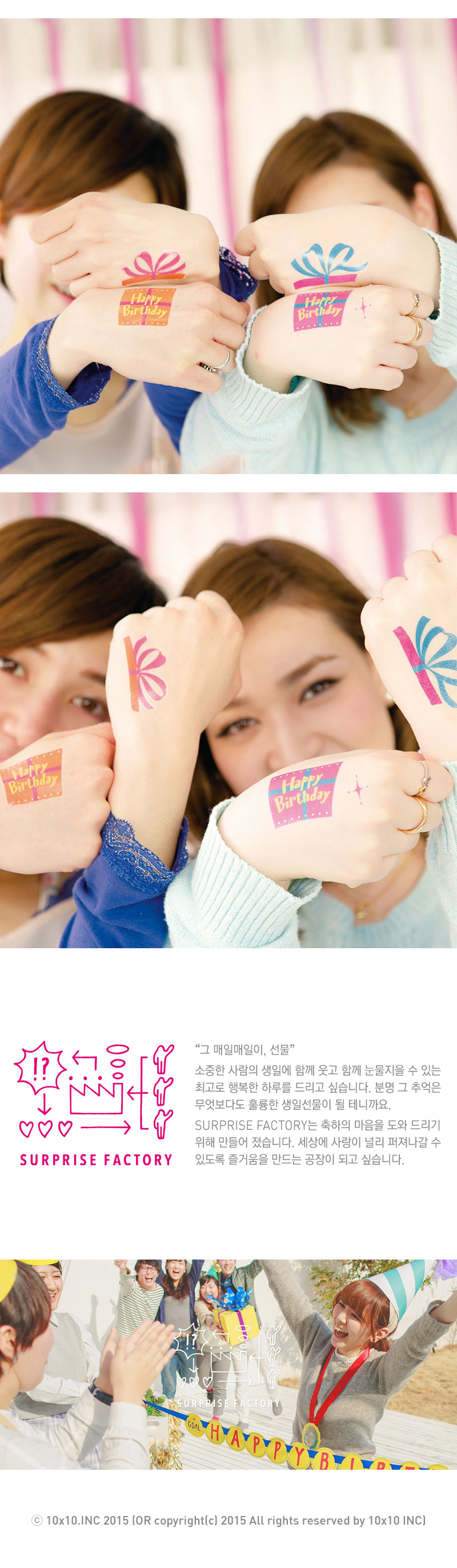 | - 사용법 1. 붙이고 싶은 부분을 깨끗하게 한 뒤 시트를 부착합니다. 2. 티슈나 타올 등에 물을 적셔 시트 위를 눌러 충분히 적십니다. 3. 20~30 초 후 천천히 필름을 제거하십시오. 4. 1 분 후 표면의 가장자리를 가볍게 물로 씻어주십시오. 5. 그대로 주위가 투명해질 때까지 잘 말립니다. * 제거 시에는 접착 테이프를 위에 붙인 뒤 함께 떼거나 클렌징 크림, 소독 알코올로 닦아냅니다. - 주의사항 피부가 약한 사람이나 알레르기가 있는 사람은 사용하지 마십시오. 특히 눈 근처 부위나 상처 위에는 절대로 붙이지 마십시오. 피부에 이상이 발견 될 때 또는 피부에 맞지 않을 때는 사용하지 마십시오. 오일이나 크림 등을 쓰면 벗겨 질 수 있으므로 주의하시기 바랍니다. 마찰 등에 때로는 의류 변색 될 수 있으므로 주의하시기 바랍니다. * 유아의 사용은 절대 삼가십시오. 또한 실수로 삼키거나 하지 않도록 주의하시기 바랍니다. |
