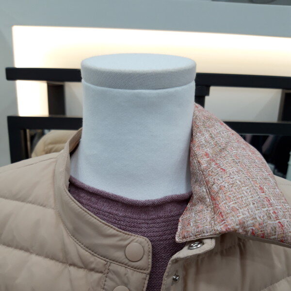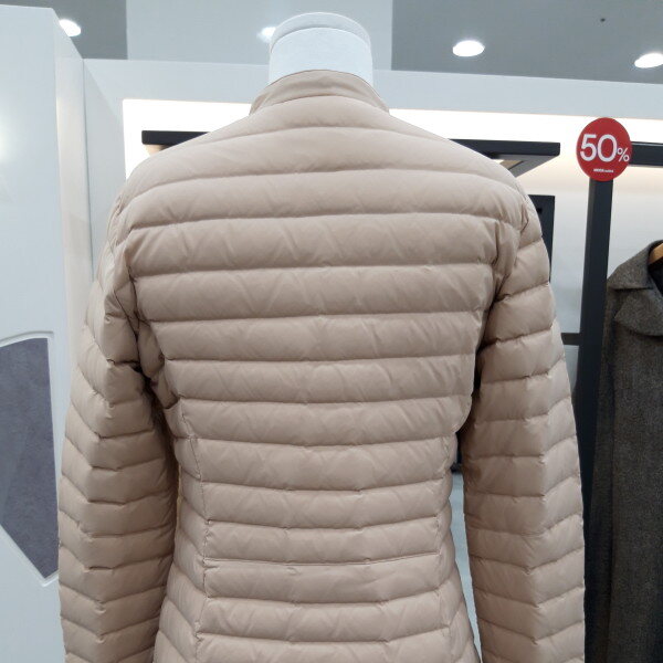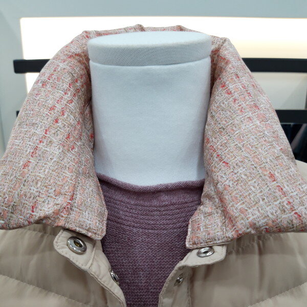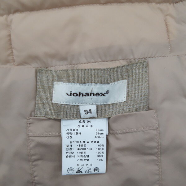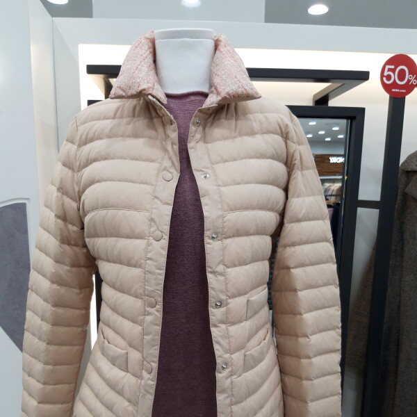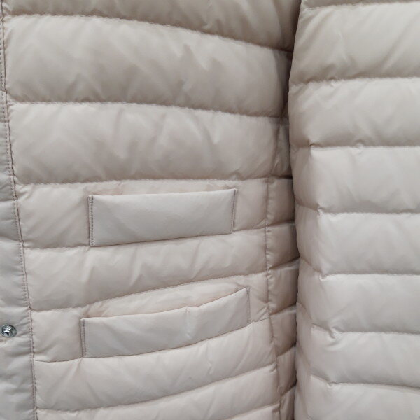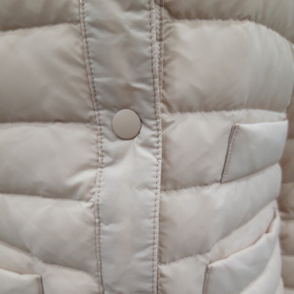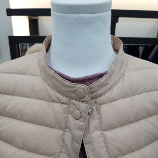 핑크빛이 살짝비치는 베이지컬러 입니다 카라가 탈붙착이 가능해 코트안 내피로 착용해도 좋아요 화이트 구스 충전제로 고급스러우며 매우 가볍고 착용감이 좋으며 따뜻 합니다