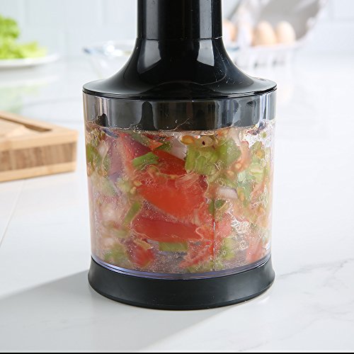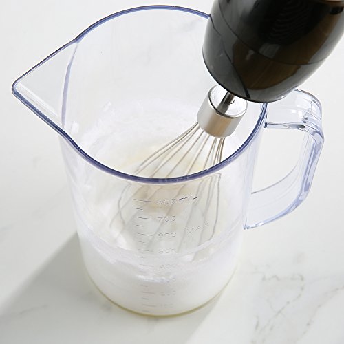 4-IN-1 MULTI-FUNCTIONS HAND BLENDER - Include immersion blender, about 400ml(14oz) food processor & 800ml(28 oz) beaker & whisk attachment plus splash guard to prevent food splatter