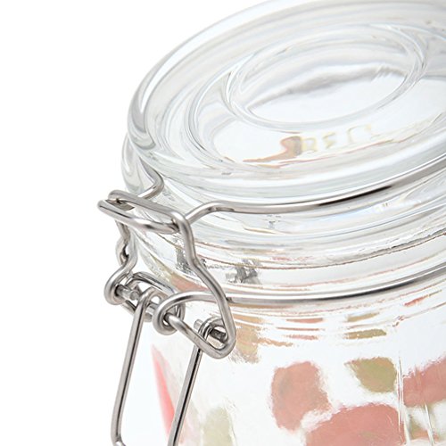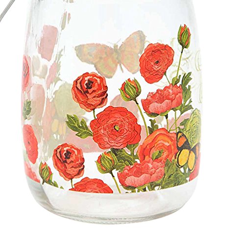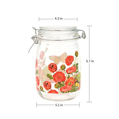 Handprinted Glass Sealing Pot Food Storage Container 26oz Red Flower