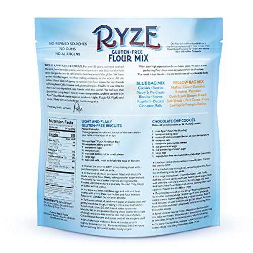 GLUTEN FREE FLOUR - RYZE is comprised of two naturally gluten free ingredients, whole grain rice flour and rice flour. Our wholesome blend of two ingredients will perform like wheat flours and is a cup for cup replacement. The whole grain rice flour allows us to retain moisture. No more crumbs or dried out goods. The blend also provides a nutritious profile, perfect for everybody. Rice is a naturally gluten free crop and is a great source of nutrition for those suffering from Celiac Disease
