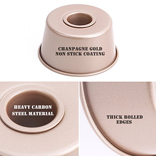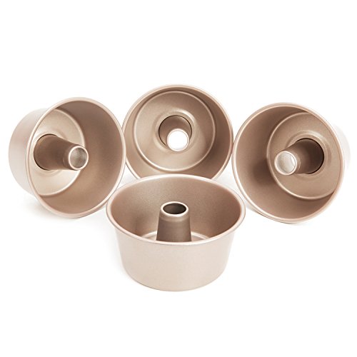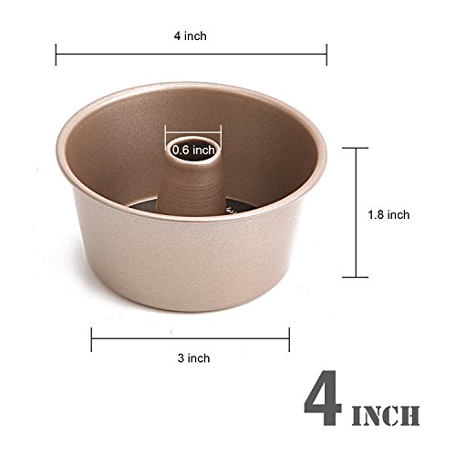 CHEFMADE 4Pcs Non-stick 4 Inch Mini Angel food Cake Pan Thick Rolled Edges with FDA Approved, Oven Roasting Baking Fluted Tube Chiffon (Champagne Gold)