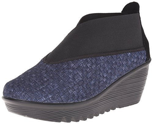 -. Feature : Slip on bootie with wedge heel / Suede and basket weave elastic upper / Wedge heel / Memory foam anti-bacterial insole / Durable synthetic outsole