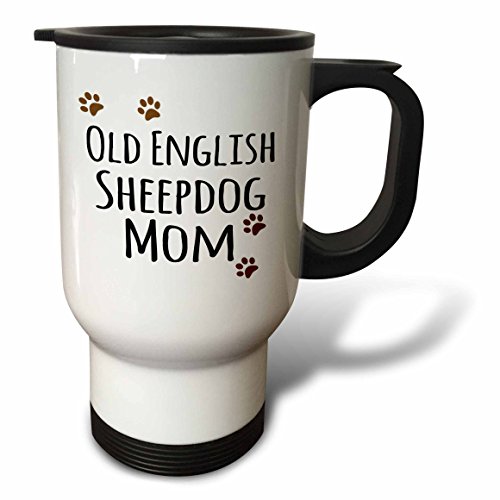 3dRose Old English Sheepdog Mom, Doggie by Breed, Paw Prints, Stainless Steel Travel Mug, 14-Oz