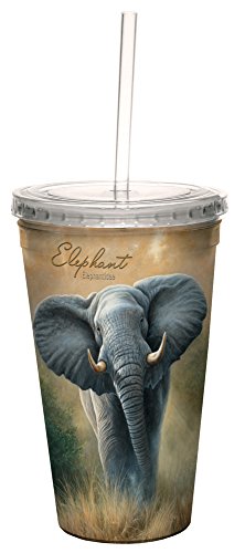 Tree-Free Greetings 35702 Jeremy Paul Elephant Double-Walled Cool Travel Cup with Reusable Straw, 16-Ounce - Gift for Animal Lovers