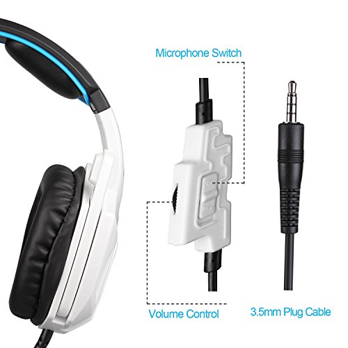 Sades SA920 3.5mm Wired Stereo Gaming Over Ear Headset with Microphone and Revolution Volume Control for Xbox One / Xbox 360 / PS4 / PC /Cell phones / iPad (Black/White)