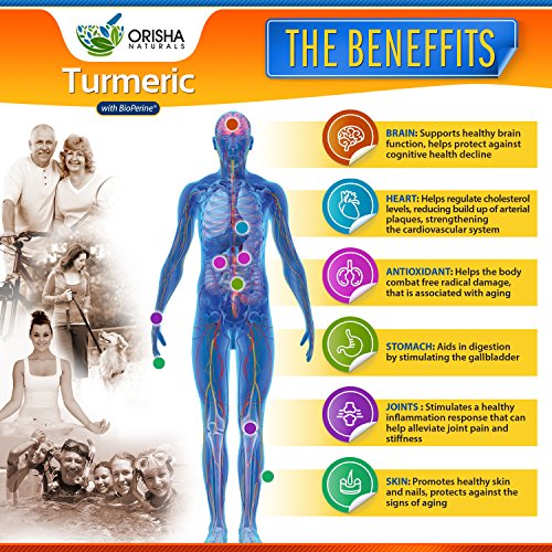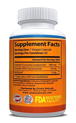 Orisha Naturals Turmeric Curcumin Supplement 600mg with Bioperine, Natural Turmeric Root Powder, Standardized and Enriched with 95%...