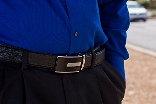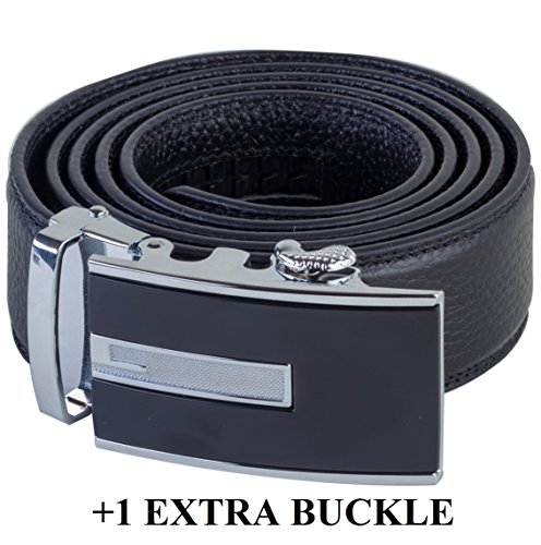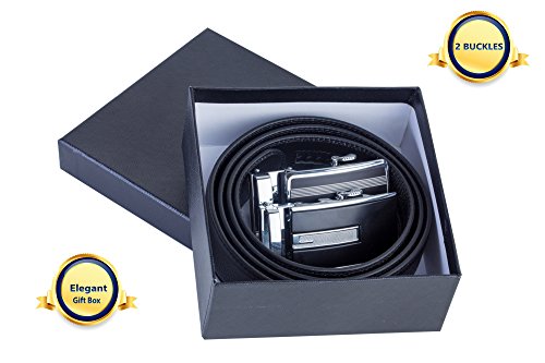 -. Title : Genuine Leather Belt Black Ratchet Belt no Holes, 2 Buckles - Mens Belt, Gift Box