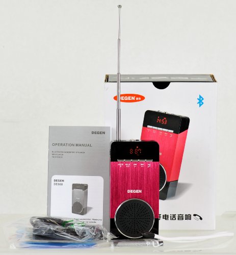 -. Title : Degen DE660 3-in-1 Portable Bluetooth Speaker, Plug-n-Play USB / Micro SD MP3 Player and FM Radio with Voice Prompt, Color Red