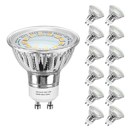 GU10 LED Bulbs 50Watt Halogen Equivalent, SHINE HAI Warm White Spotlight Bulbs GU10 Base, 3.5W MR16, 120Volt, Non-Dimmable, 350lm, 110° Beam Angle, LED Light Bulbs, 12-Pack