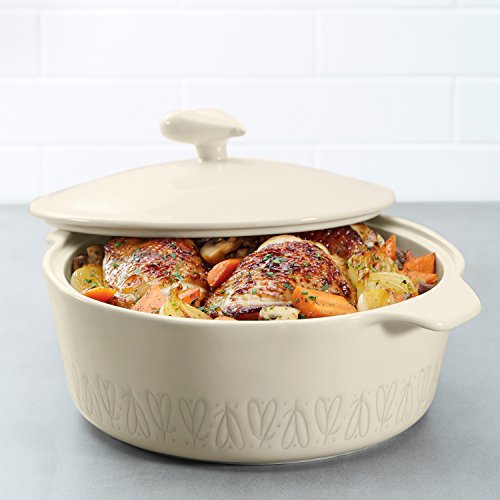 ReleaseDate : 2017-11-15 Studio : Ayesha Curry Publisher : Ayesha Curry Binding : Kitchen Product Description Pull together an easy batch of weeknight Five Ingredient Pasta or make your next extra cheesy mac and cheese a household hit with the Ayesha Curry Home Collection 2.5-Quart Stoneware Round Casserole. A stylish profile gives this casserole pan just the right accent of chic, table-ready design, while the large cooking area offers plenty of room for Ayesha's Oven-Roasted Brown Sugar Chicken or a family-sized dish of potatoes gratin. Durable, high-quality stoneware heats foods evenly and features a vibrant, stain-resistant glazed finish that stylistically incorporates Ayesha Curry's signature heart logo, making this versatile cookware perfect for an oven-to-table dinner party with friends or a holiday meal with the entire family. Plus, this Ayesha Curry kitchenware helps support No Kid Hungry to provide up to 500,000 meals to children in need. Learn more at nokidhungry.org/onedollar. Whether crafting a one-pot meal of turkey noodle soup or baking a batch of gooey mac and cheese, cleanup is easy with the dishwasher safe casserole. Ayesha Curry stoneware is also freezer and microwave safe, so make plenty of leftovers for a quick lunch on the go or for when weekend stomachs start growling. Designed to look great and be versatile and easy to use, the Ayesha Curry Home Collection 2.5-Quart Stoneware Round Casserole is a natural complement to the entire Ayesha Curry line and the perfect cookware to discover your kitchen cool without the fuss. 0