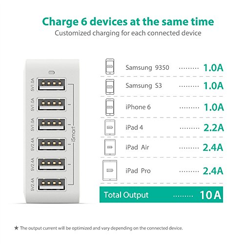 Exclusive iSmart Technology: All 6 USB ports are equipped with iSmart technology, which automatically detects and delivers the optimal charging current for connected devices( Qualcomm Quick Charge 2.0 not supported).