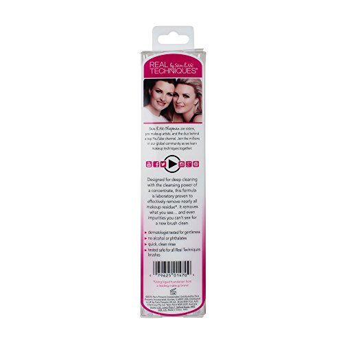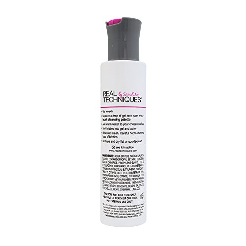 Designed for deep cleaning, with the cleansing power of a concentrate, this formula is laboratory proven to effectively remove nearly all makeup residue*. It removes what you seeand even impurities you cant see for a new brush clean.dermatologist tested for gentlenessno alcohol or phthalatesquick, clean rinsetested safe for all Real Techniques brushes Usage Directions: Use weekly Squeeze a drop of gel onto palm or textured surface Add warm water to your chosen surface Swirl bristles into gel and water Rinse until clean. Careful not to immerse base of bristles Reshape and dry flat or upside down CAUTION: FOR ADULT USE ONLY. KEEP OUT OF REACH OF CHILDREN. FOR EXTERNAL USE ONLY. *Using liquid foundation from a leading makeup brand